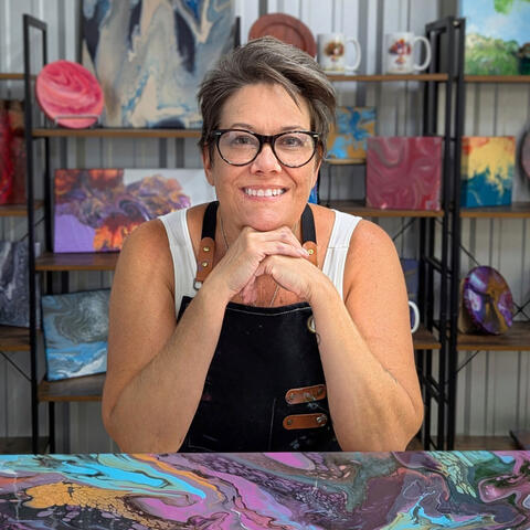 At Skiba Studio, we believe art isn’t about perfection — it’s about joy, discovery, and connection. I’m a fluid art painter, and my husband Michael is an award-winning woodturner. Together, we’ve built a space for people of all ages to come together, play with color, learn new skills, and surprise themselves.Every pour tells its own story — and I can’t wait to paint with you.